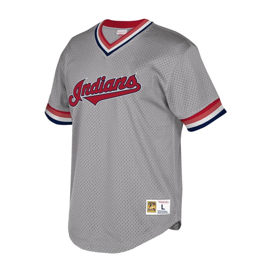 Cleveland Indians Mitchell & Ness Cooperstown Collection Mesh Wordmark V-Neck Jersey – Gray 2019