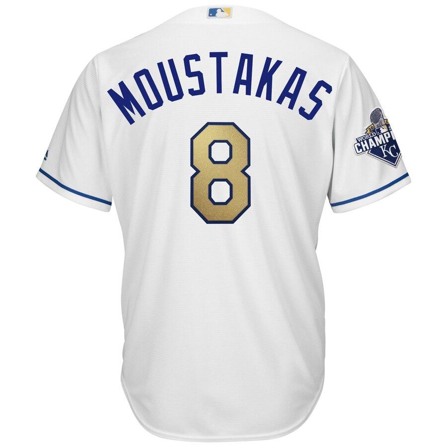 Mike Moustakas Kansas City Royals Majestic 2015 World Series Champions Gold Program Cool Base Player Jersey - White 2019